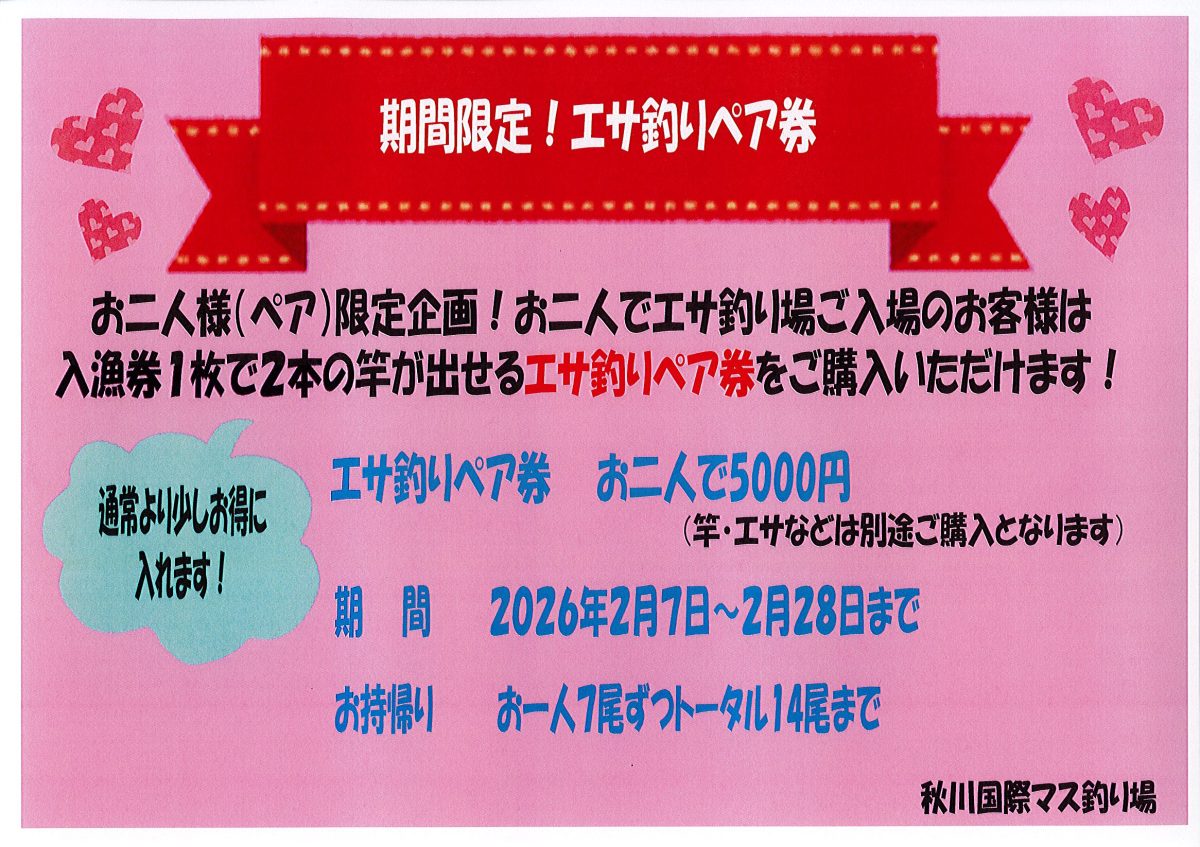 【期間限定!エサ釣りペア券の販売について】2026.2.6(金)