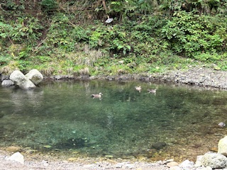 川ではお客様より先にカモさんが遊びに来てくれました🎶